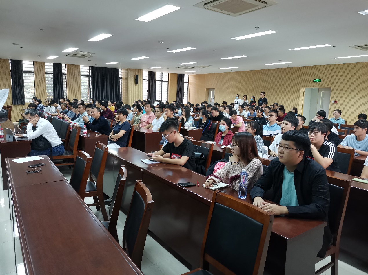 陈学思院士报告题目为:生物可降解高分子材料。报告介绍了其团队在绿色可降解塑料聚乳酸、骨科固定器件、组织工程支架、基因/药物纳米载体等材料研发与产业化应用方面的工作。报告风趣生动,他强调学生一定要打好高分子化学与物理、高分子加工等高分子材料方向的基础学习,学以致用,学有所用。会场不时响起热烈的掌声。